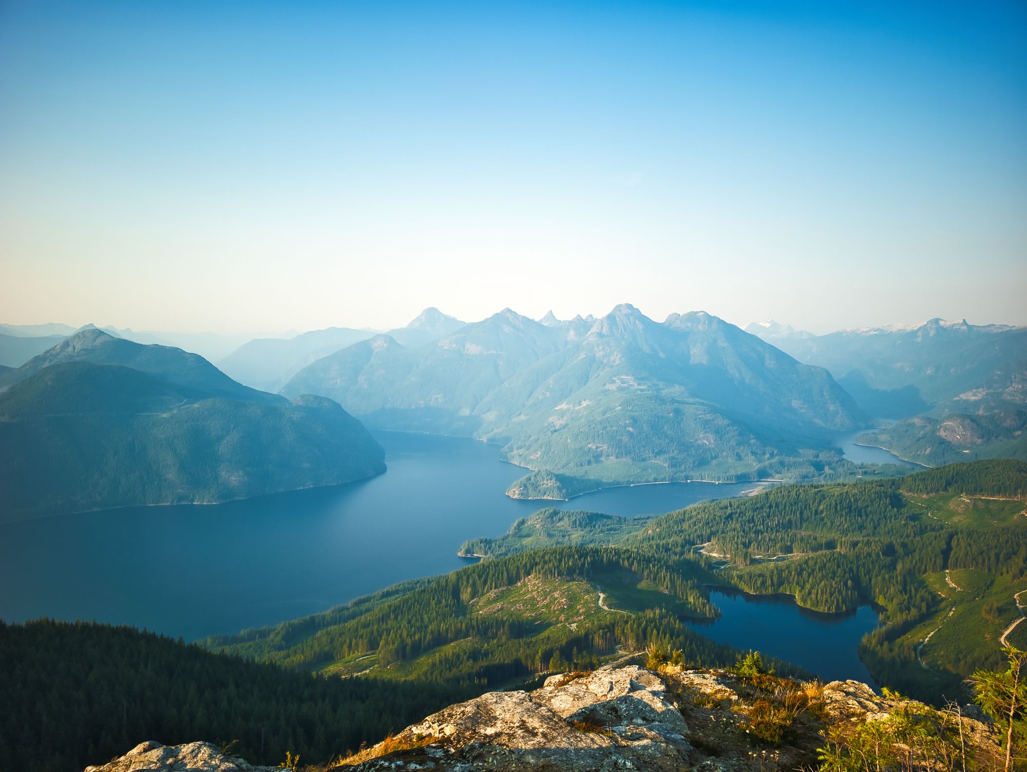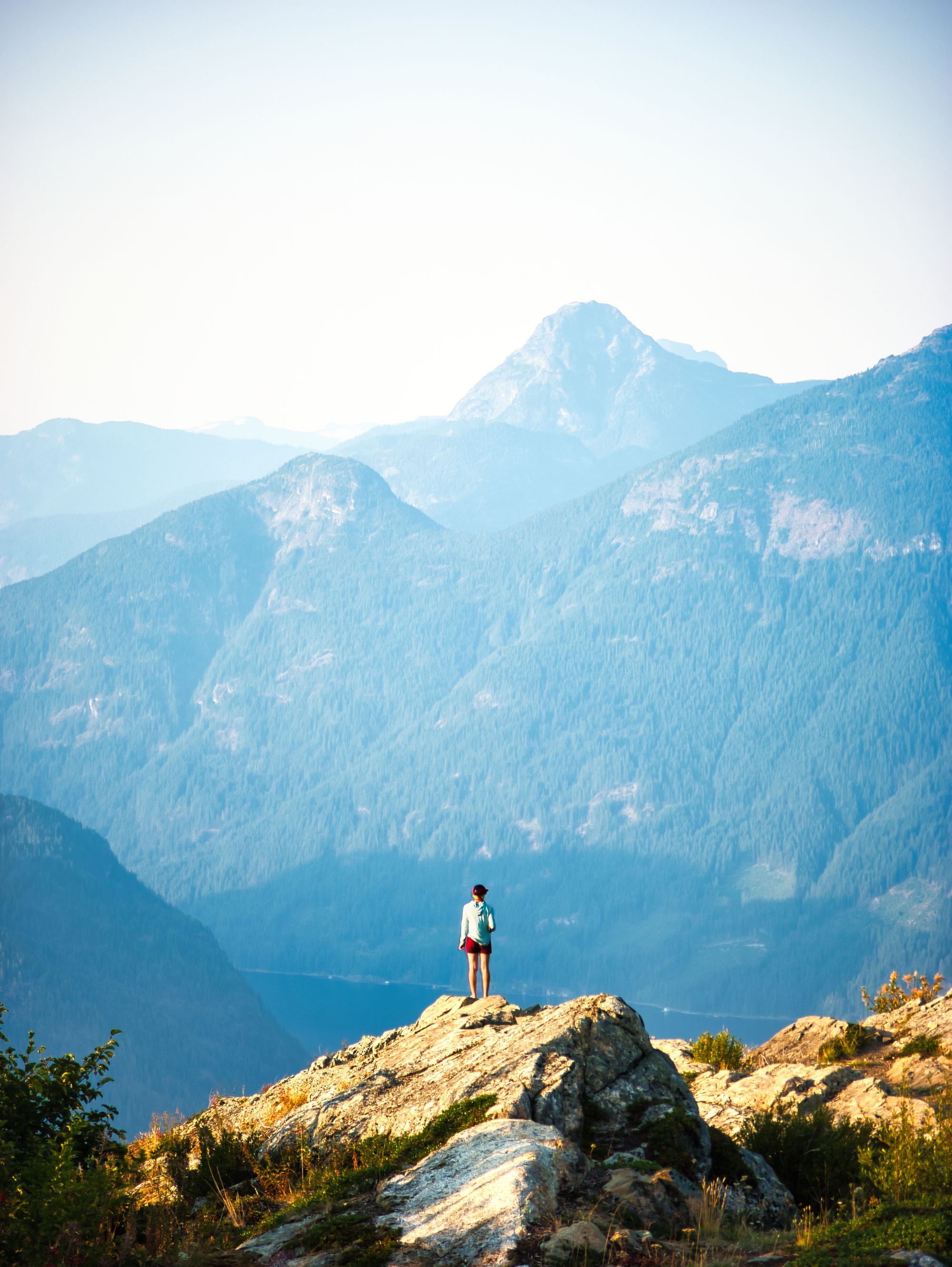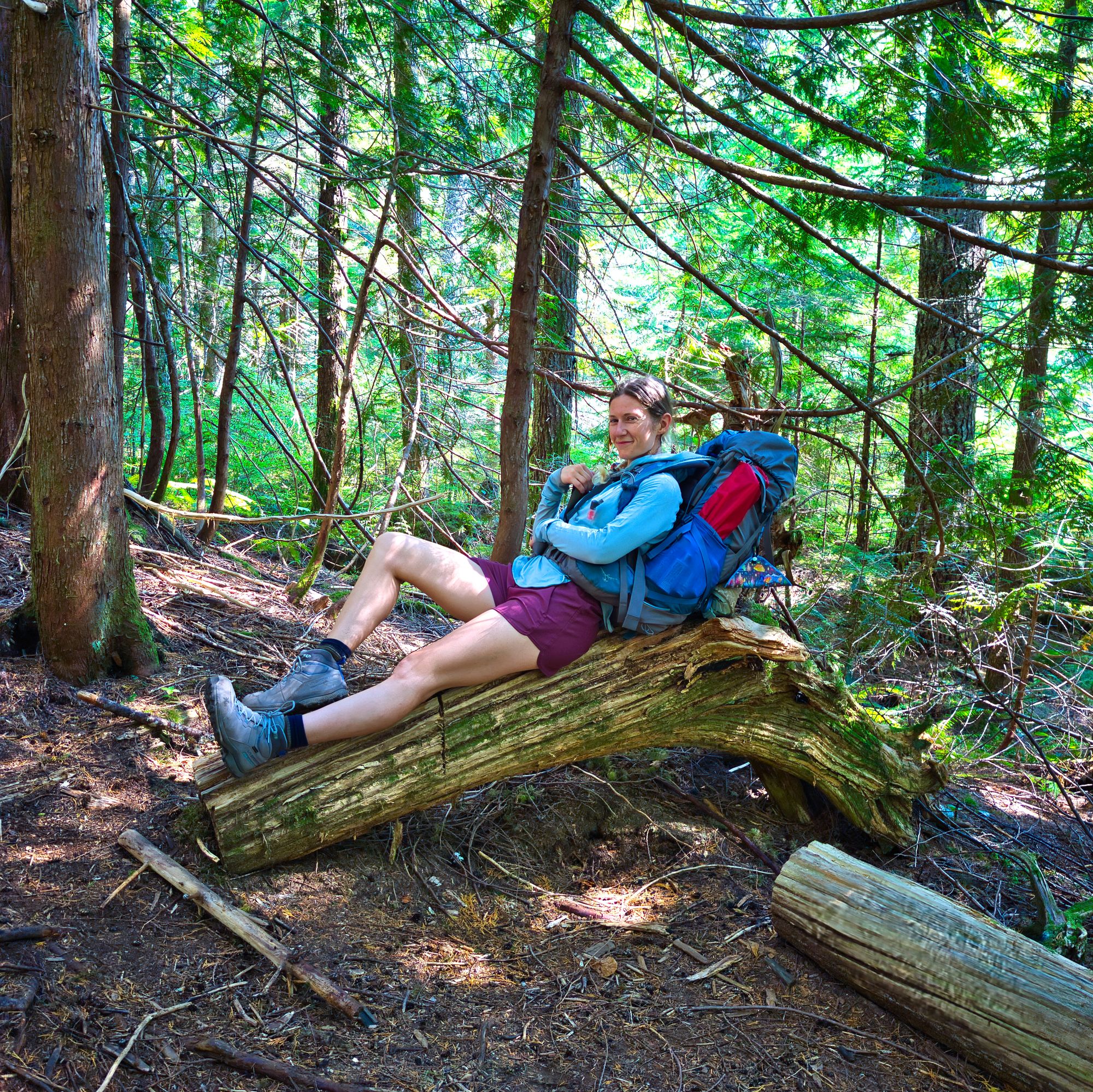 After dinner we hiked up to the summit for dessert – freeze-dried ice cream sandwiches, absolutely incredible – and to admire the views. The trail up from the hut is super short so we were up quick! Would definitely recommend wearing real shoes rather than camp sandals though, as it’s a bit scrambly in a couple parts. We met a solo hiker who'd set up a small tent on a flat spot near the top with a really fantastic view. We sat for a while, looking out over Powell Lake and the surrounding hills.