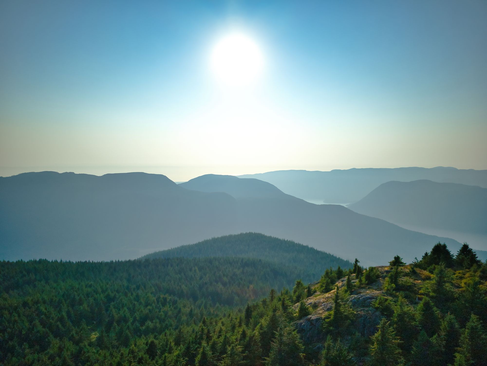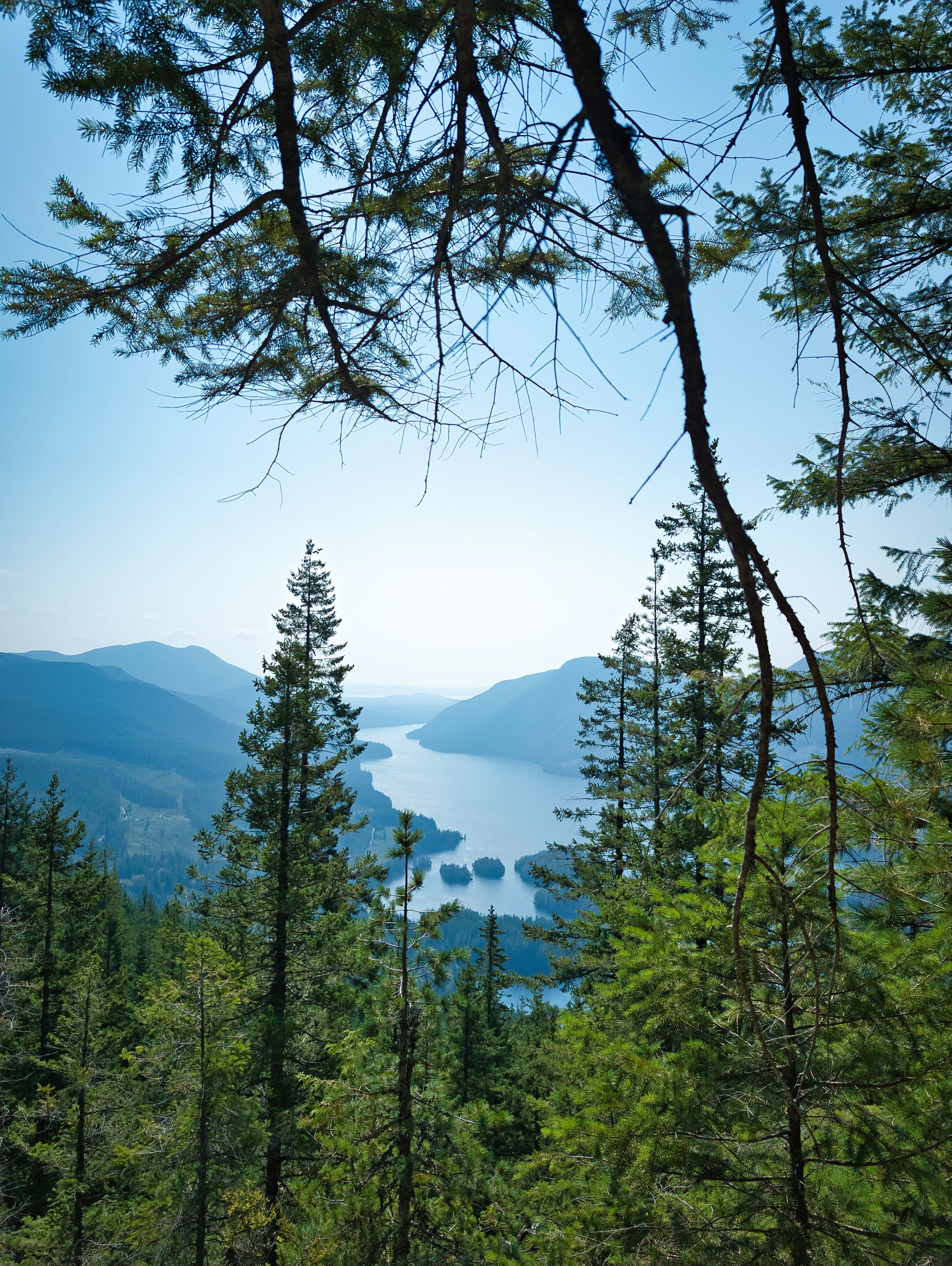 The rest of the climb was a real grind… It started with single track slashing its way diagonally across the mountain, and then began switch-backing up the southwest flank. The trail stayed deep in the trees as we climbed, but occasionally we got peekaboo views out to Haslam Lake to the south. The next few KM markers were missing, but despite other hikers warning us about this, we found not having those mini “goal-posts” made the climb feel longer.
