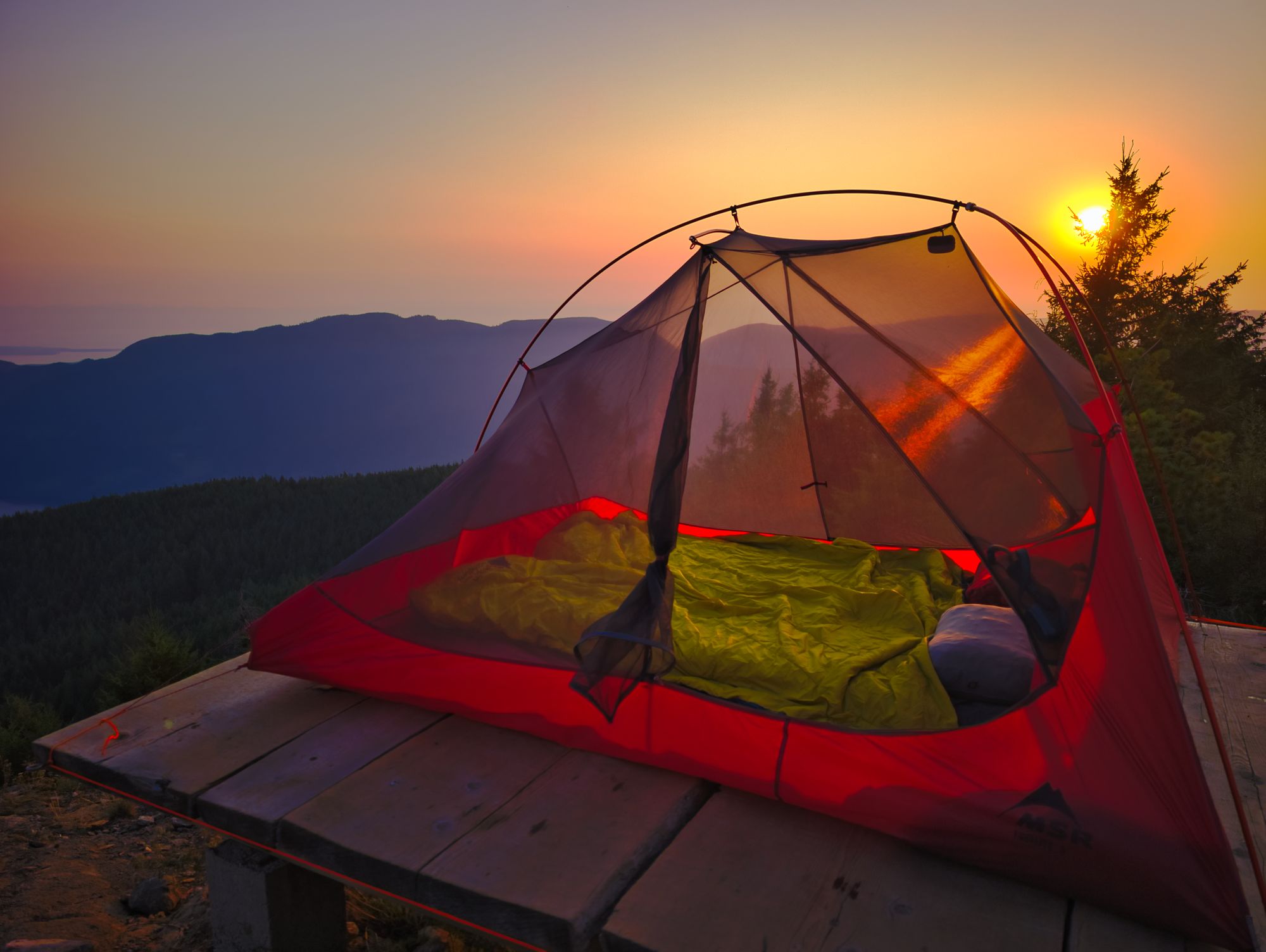 Confederation Lake Hut: Fully enclosed, winterized hut. 2 picnic tables, bear cache, extra-large tent platform, composting outhouse. Great swimming access, rowboat that doesn't leak (as of August 2025). Tin Hat Mountain Hut: Fully enclosed, winterized hut. 3 picnic tables, 2 wooden tent pads, 2 composting outhouses. A few more hidden places to pitch a tent, including one up at the summit. |